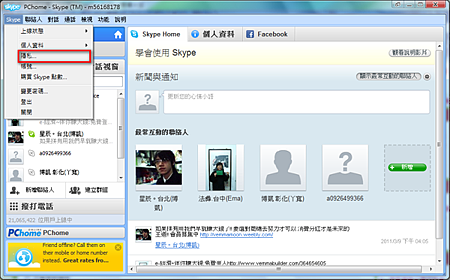 2-1. 點擊SKYPE視窗左上角SKYPE