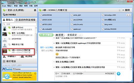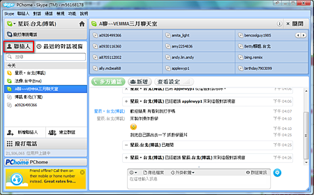 2-10.這時候就可以發現聯絡人名單中出現了"X 聊~~VEMMA某月聊天室" 以後要進入聊天室就直接點一下就可以了